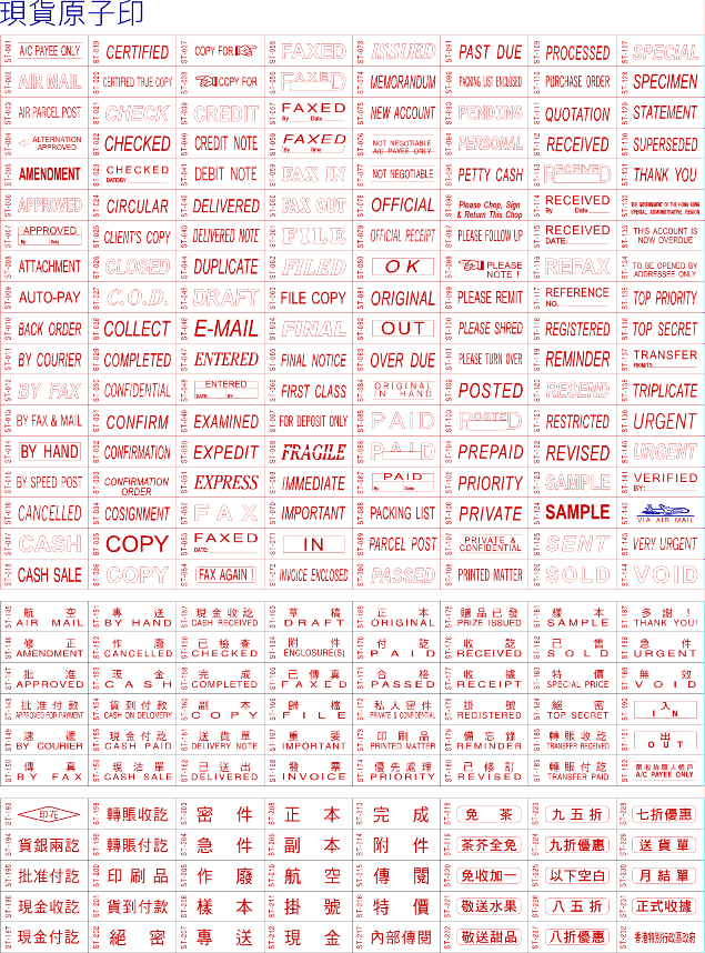 另備有大量原子印不同呎寸,歡迎來電查詢 |